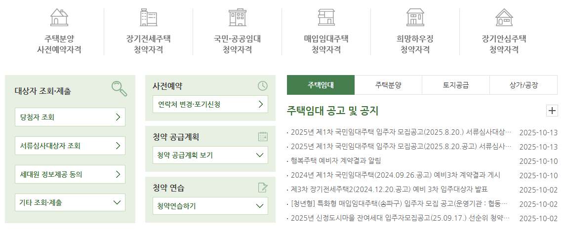 - 공고 열람 및 청약정보 제공 – 신규 분양, 임대주택, 상가 임대 등의 공고문을 확인할 수 있습니다.