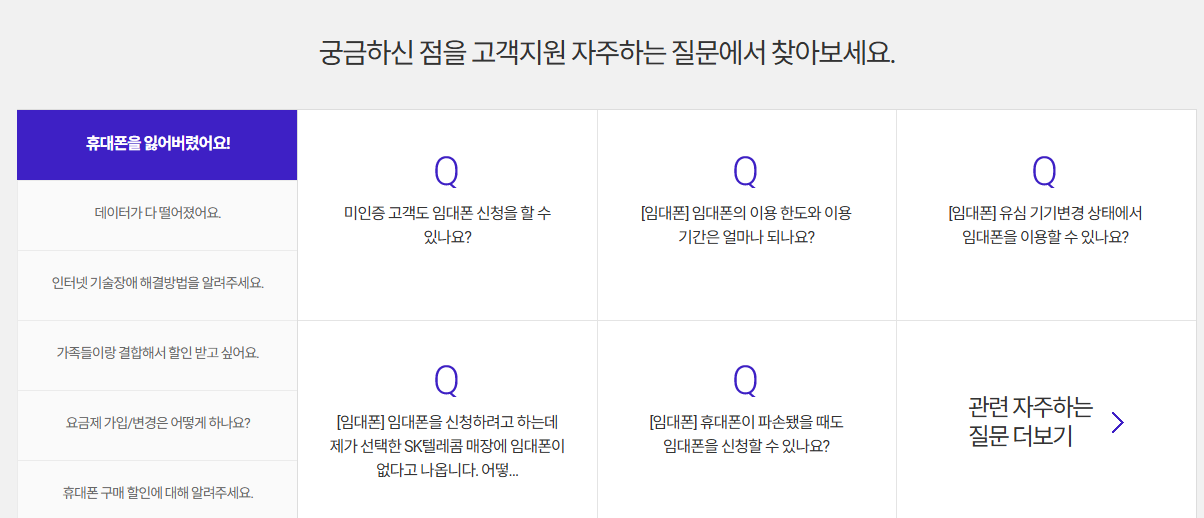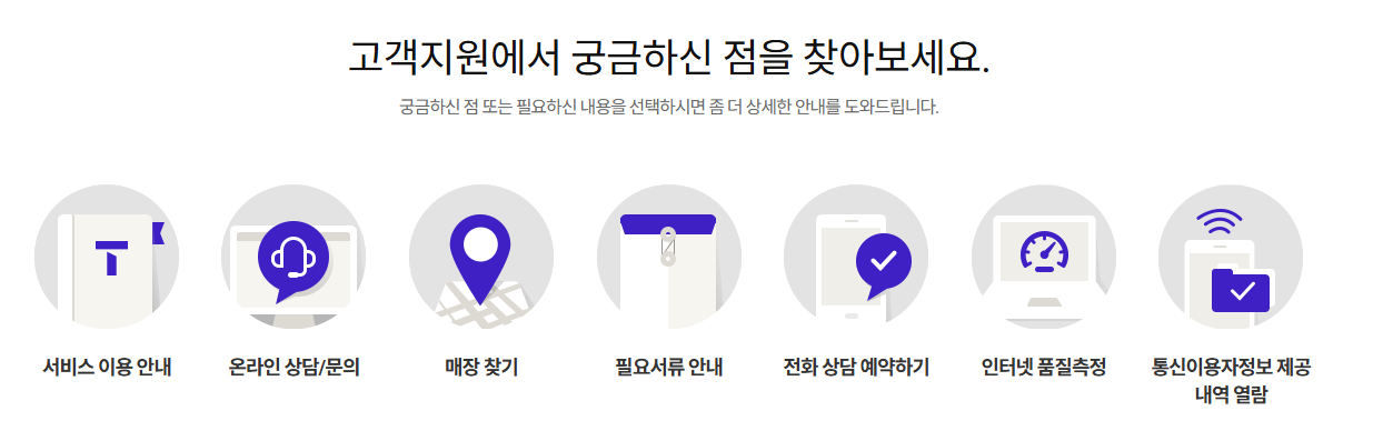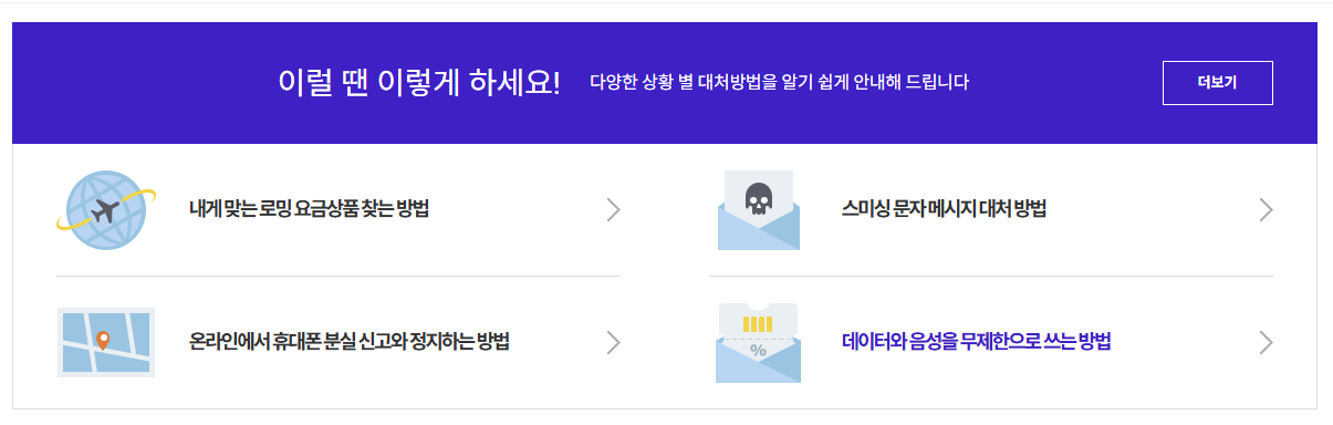 분실, 로밍, 통화 품질처럼 급한 문제는 따로 보셔야 합니다