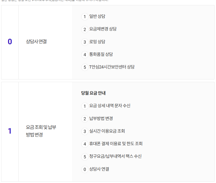 | 휴대폰 고객센터 | 114 | SK텔레콤 휴대폰에서 무료로 일반 상담할 때 |